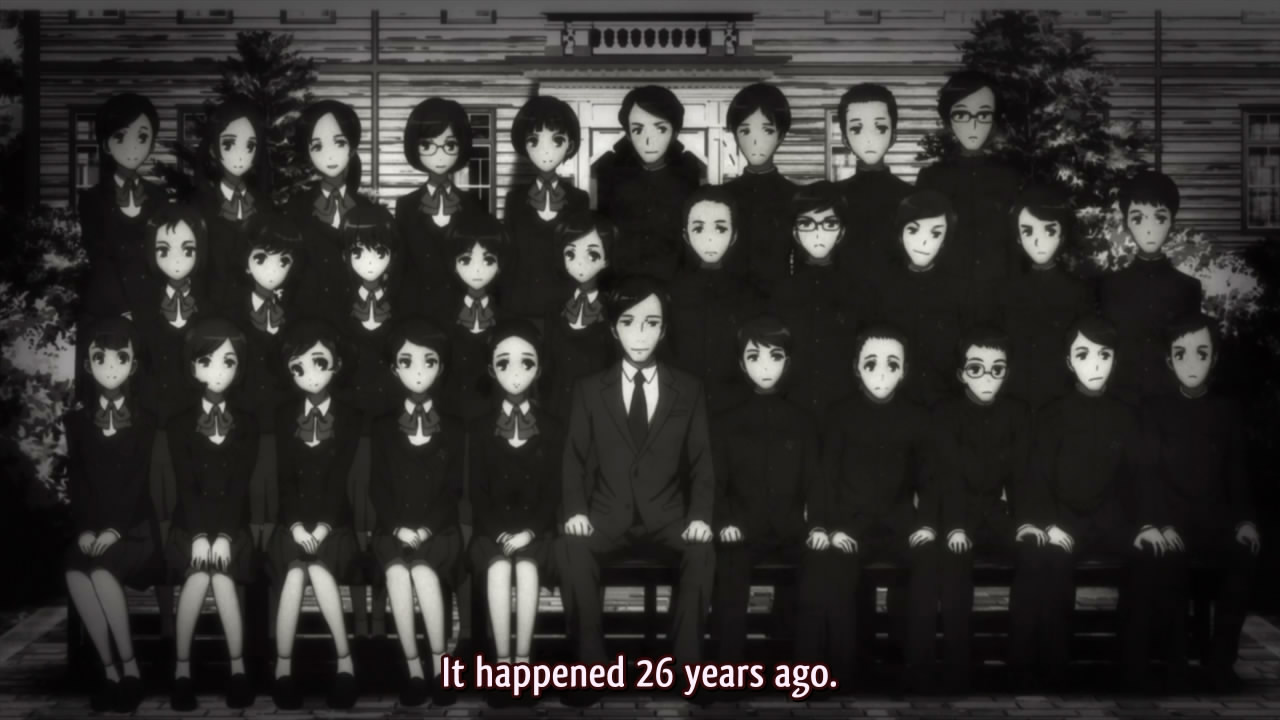 The story of Another revolves around a legend that says 26 years ago a popular high school student died. The entire class was grieving until one day a random student jumped up and said they could see their dead friend alive and well sitting at their desk. Slowly the rest of the class started to act like this student hadn’t died at all. They say that at the end of the year- during the class photo- they could even see the deathly image of the student smiling with their classmates. The following year something tragic happened and every since the class has been cursed.